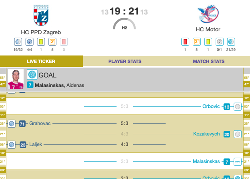 Aidenas Malasinskas (Motor) and David Mandic (Zagreb) are leading on the score board with five goals apiece.