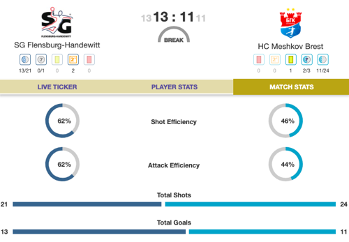 If you can't follow the match on EHFTV.com, keep track of the score and other statistics on the live ticker.