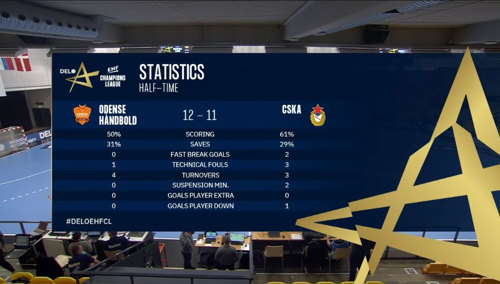 16:38 | HALF-TIME Odense Håndbold 12:11 CSKA