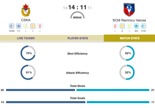 - 16:00 CEST: CSKA vs SCM Ramnicu Valcea (group B)
