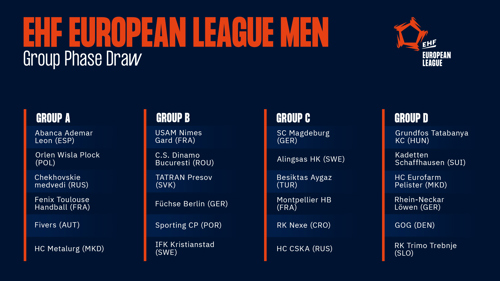 And that's a wrap! The draw for the first EHF European League Men group phase is complete. Here are the four groups.